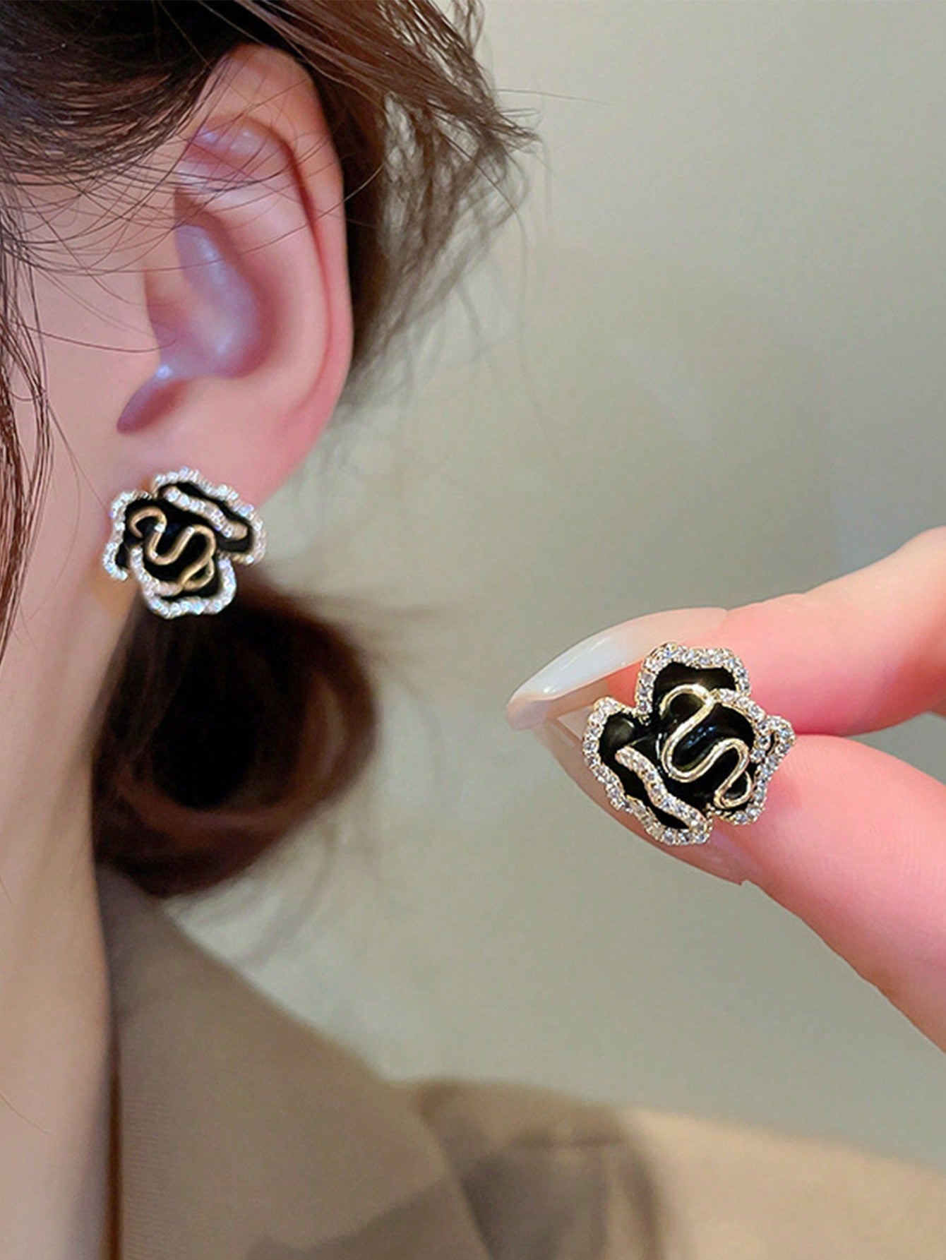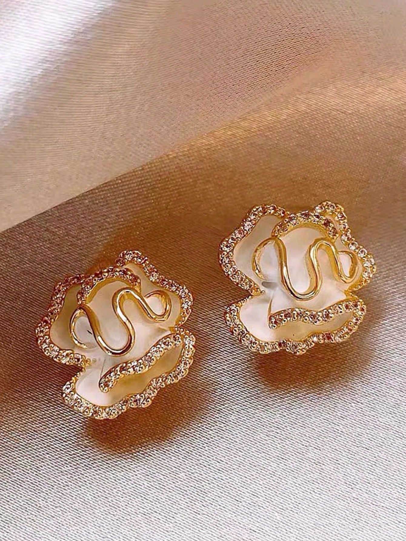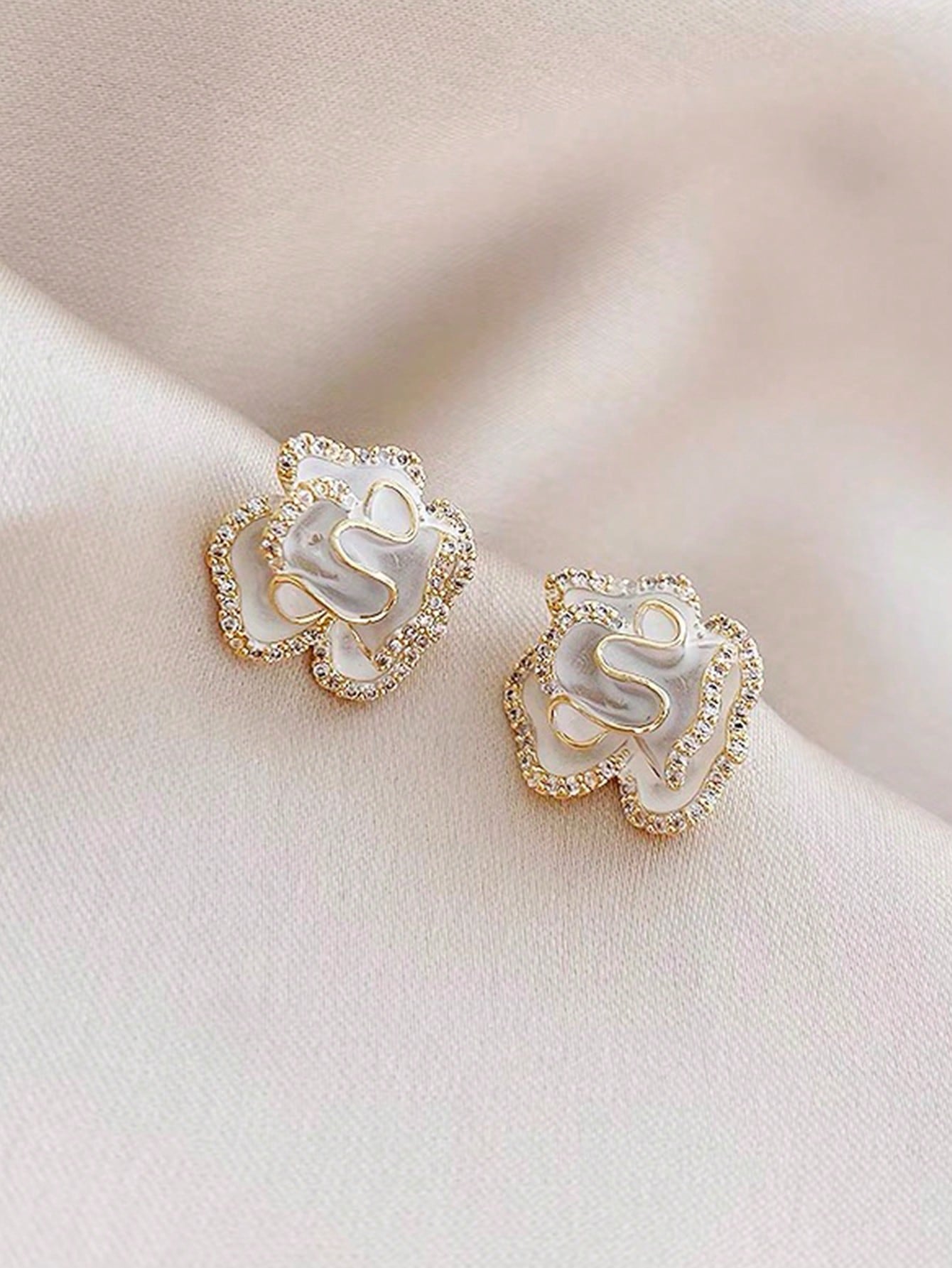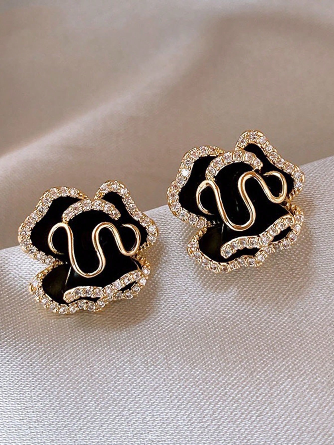• 1 Pair Exclusive Design Luxurious Rhinestone Floral Stud Earrings