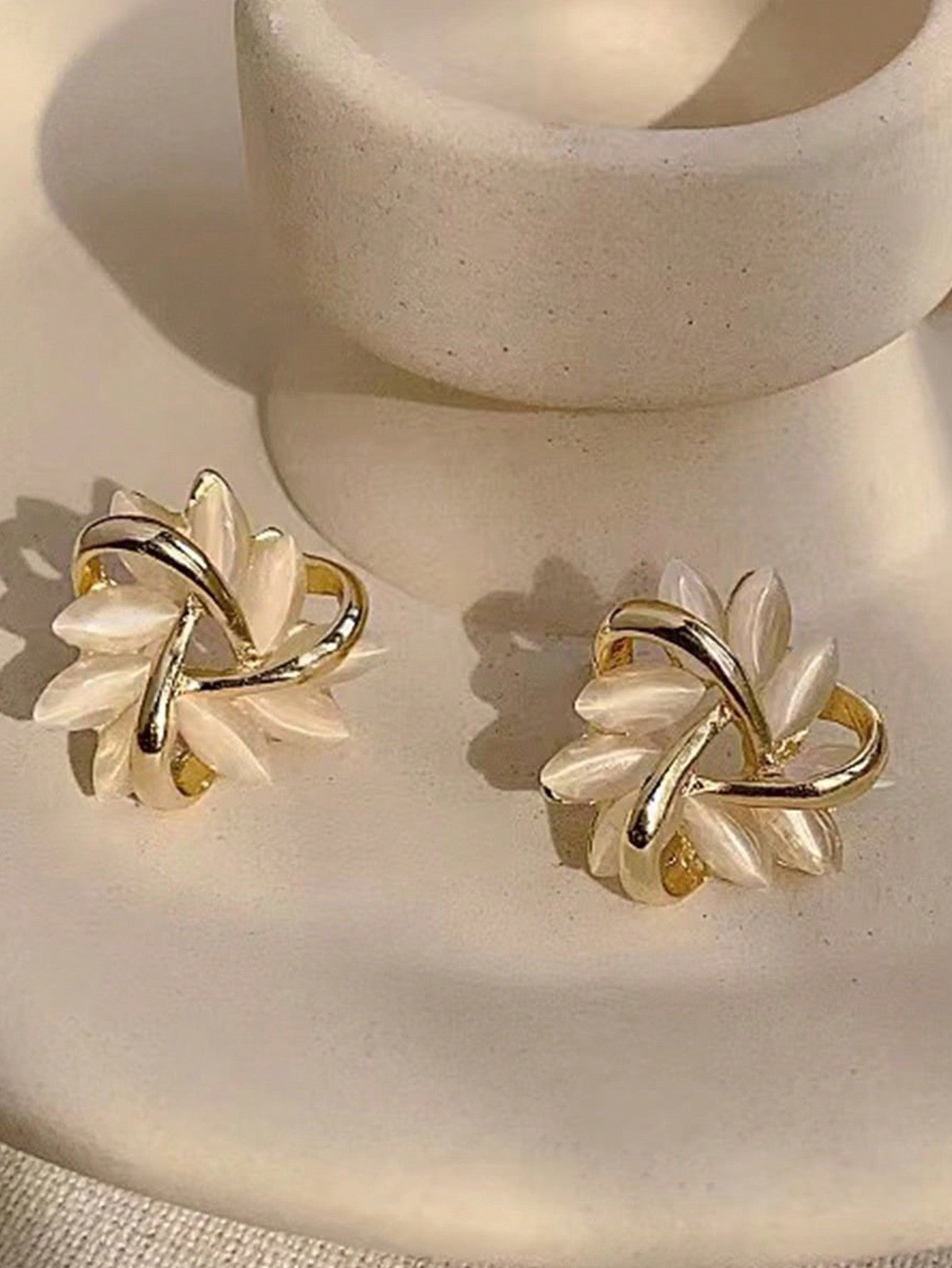 1 Pair Minimalist Elegant Cat Eye Stone & Sunflower Stud Earrings Valentines