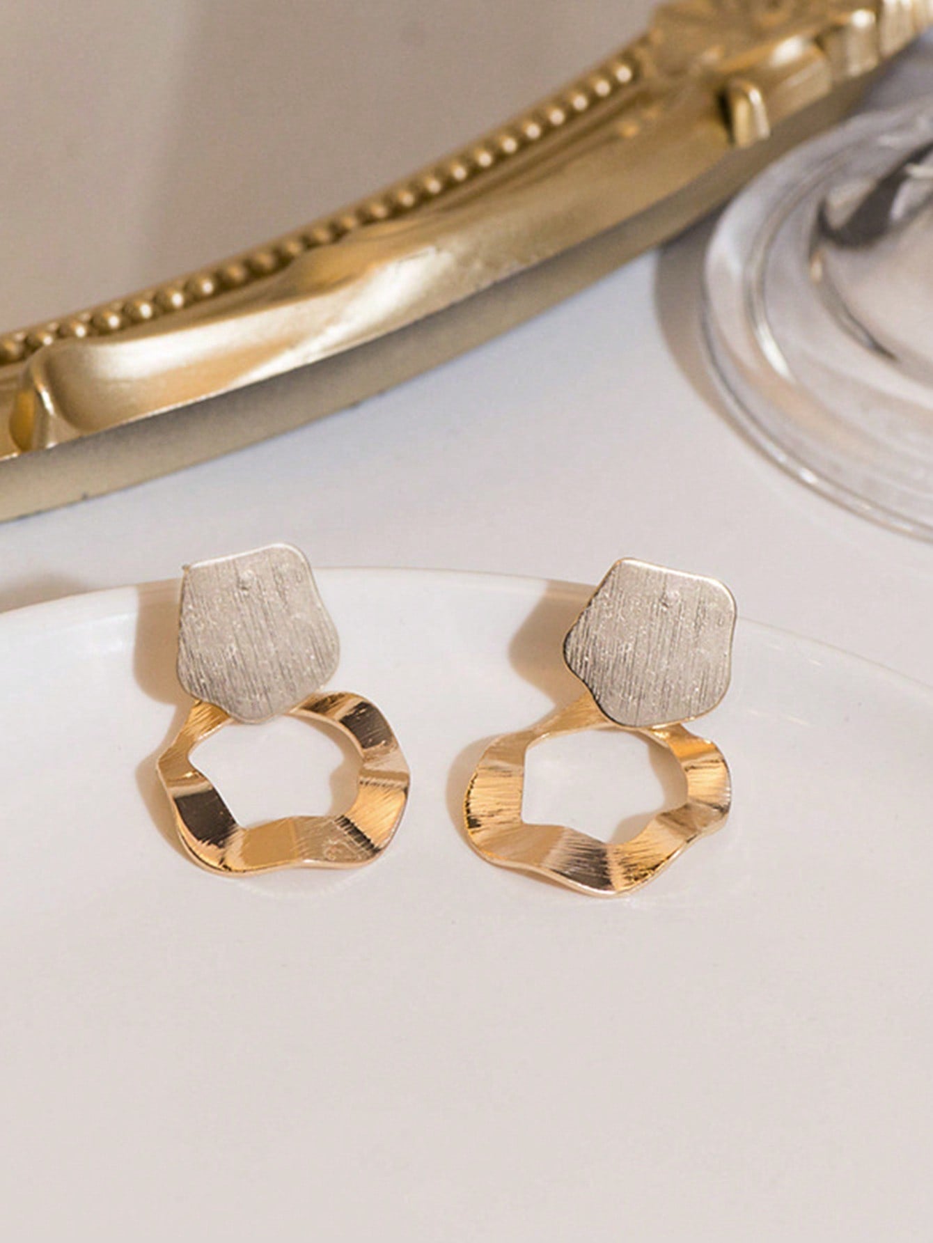 • 1pair Fashionable Stainless Steel Geometric Drop Earrings For Women For Daily Decoration
