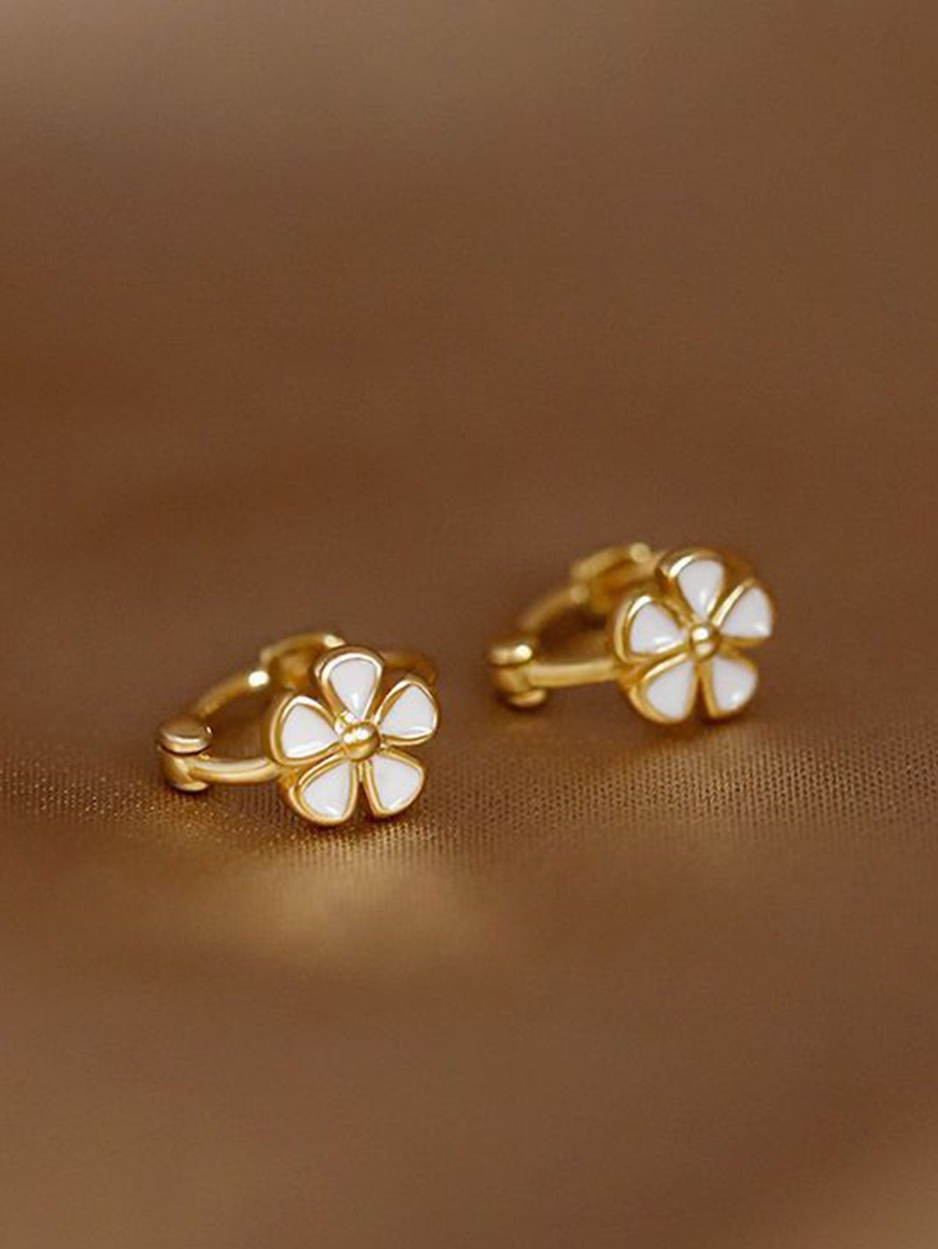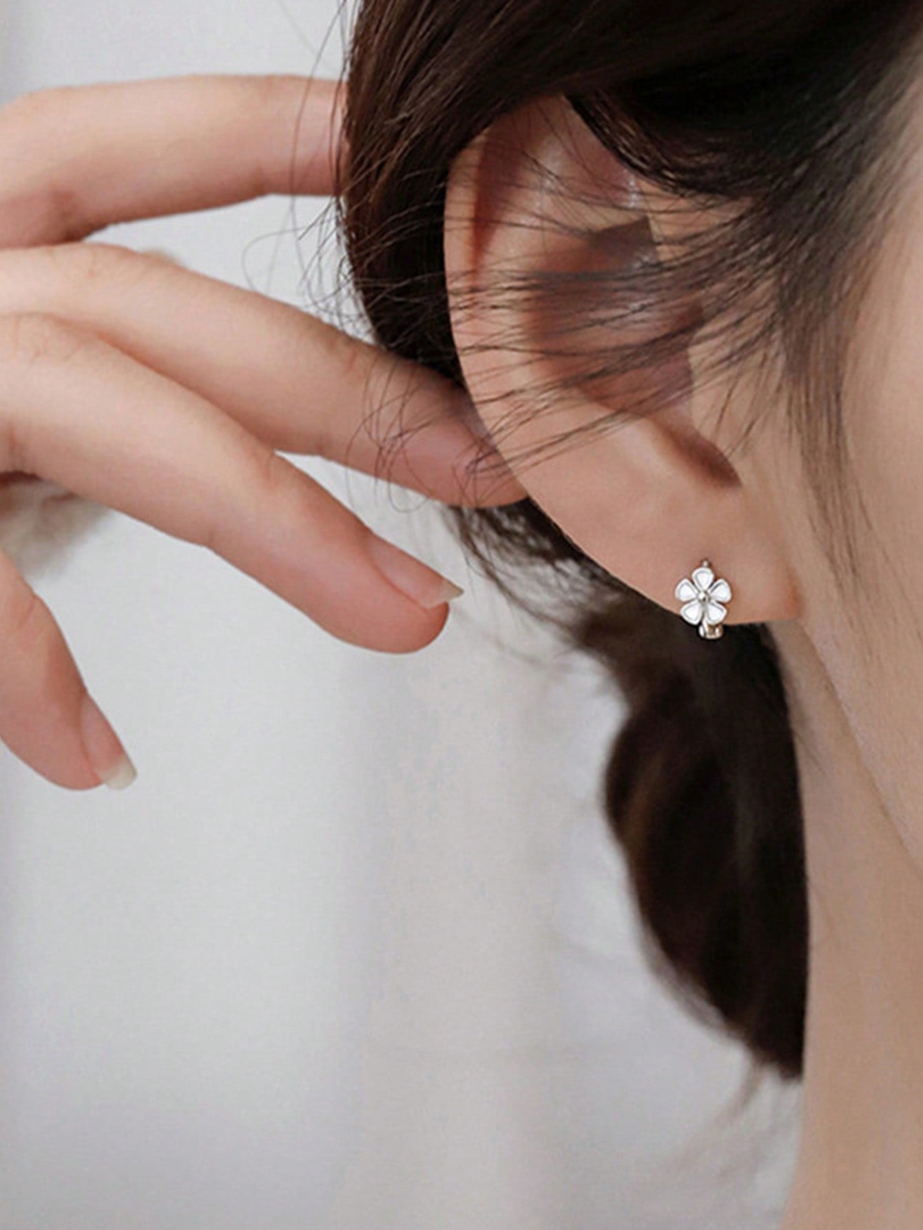 1pair Simple Five-Petal Drip Glaze White Flower Earrings Valentines,Mom,Mother,Mother's Day,Gift