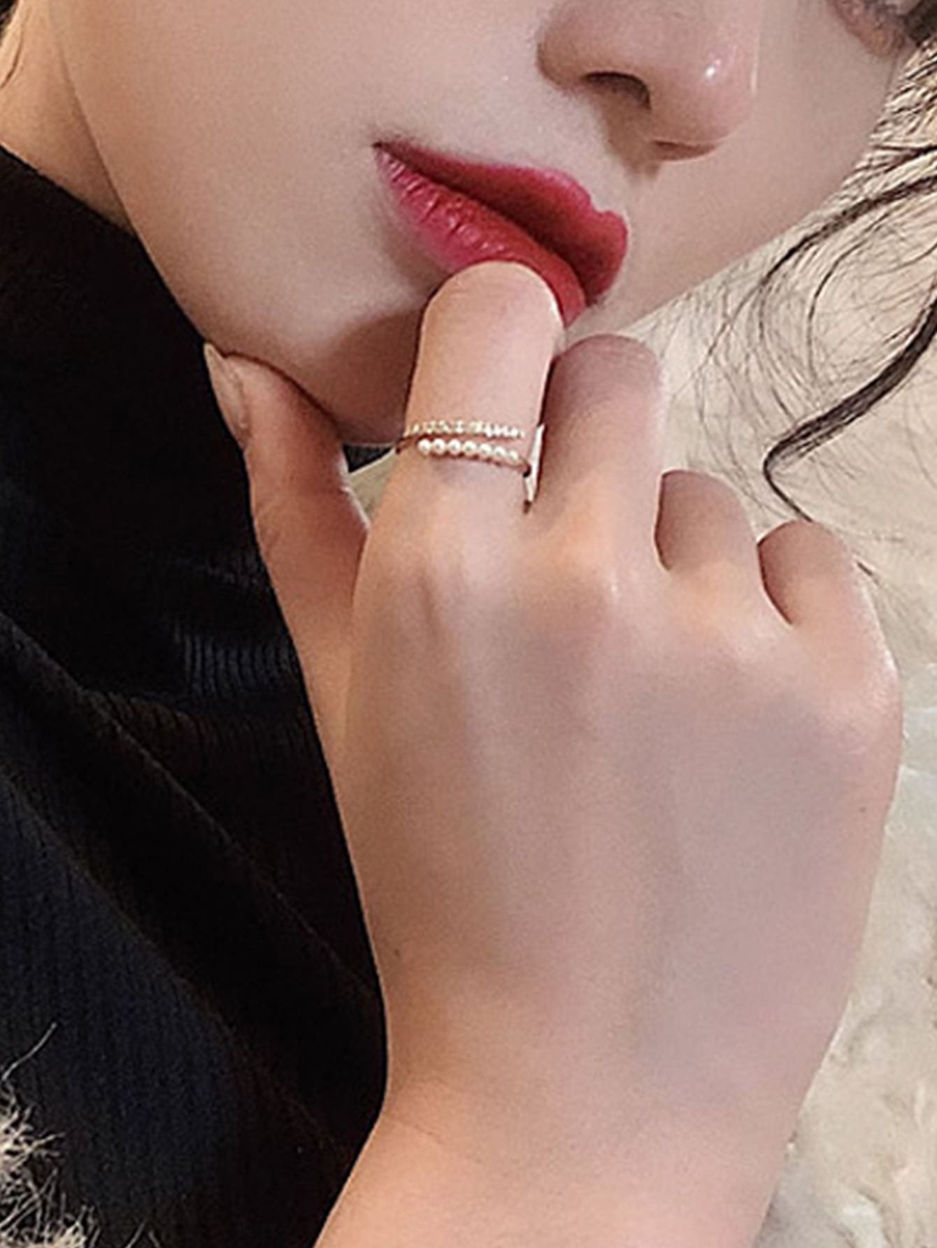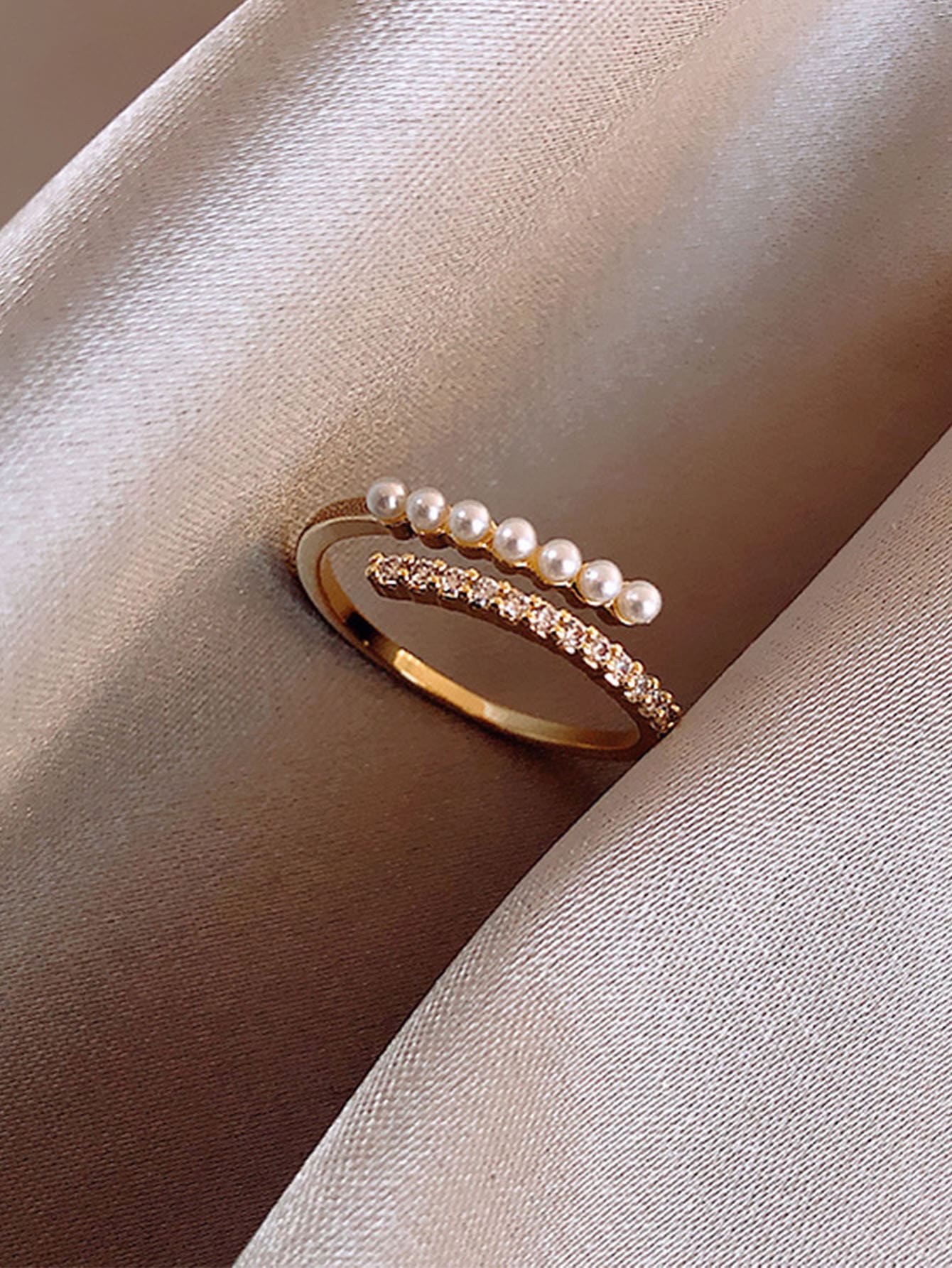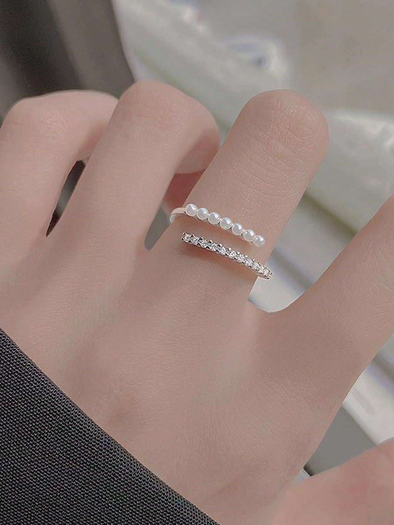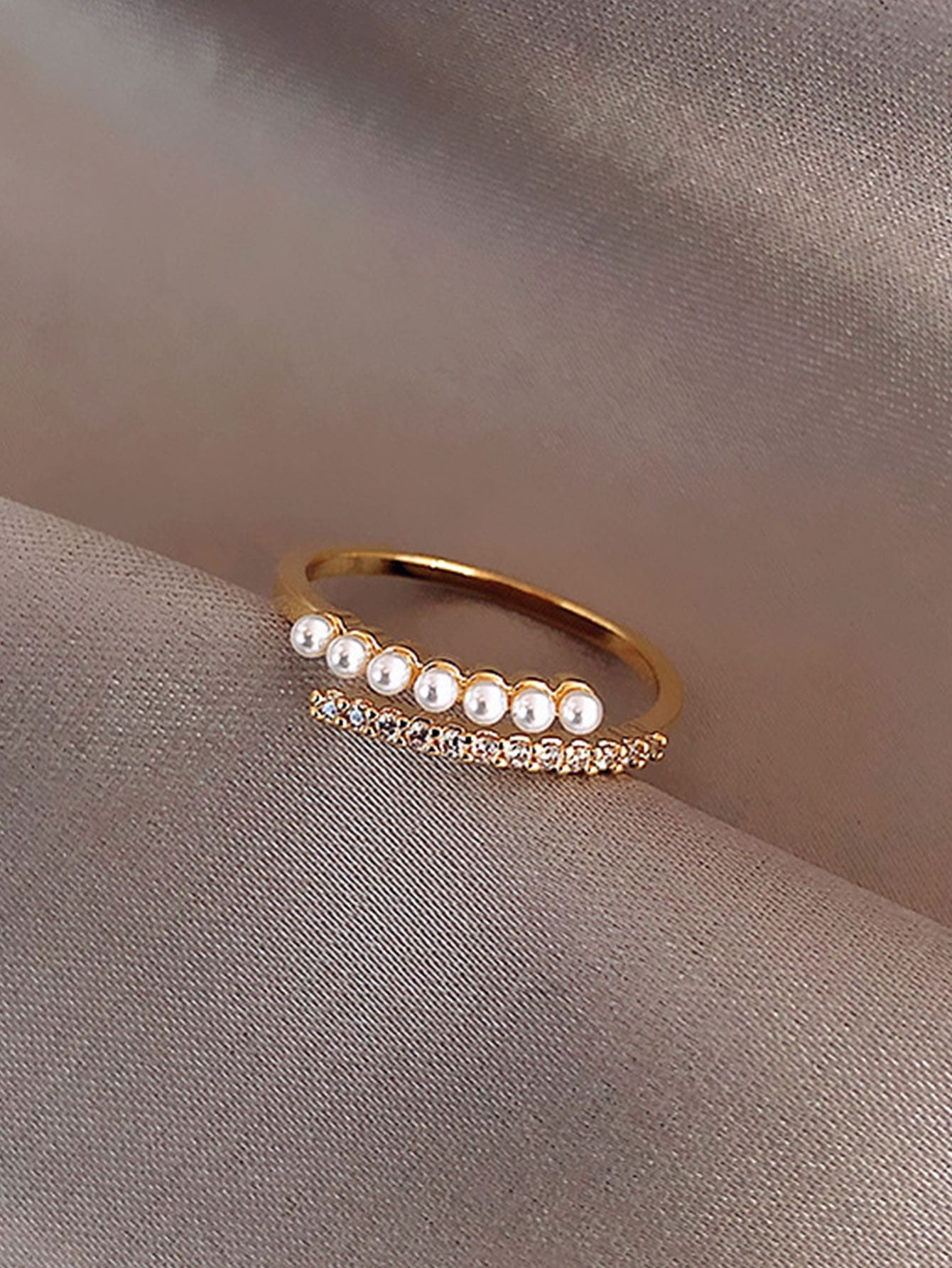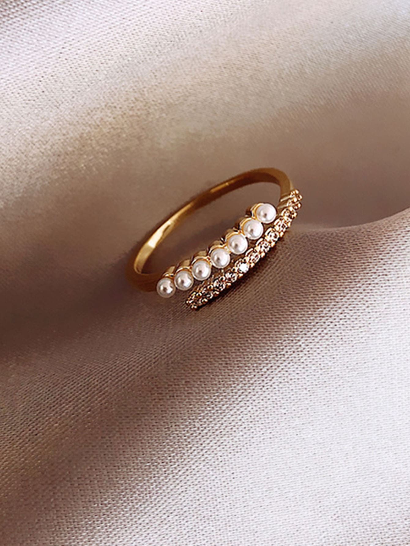 • 1pc Baroque Faux Pearl Decor Index Finger Ring With Simple Open Design, Adjustable Size