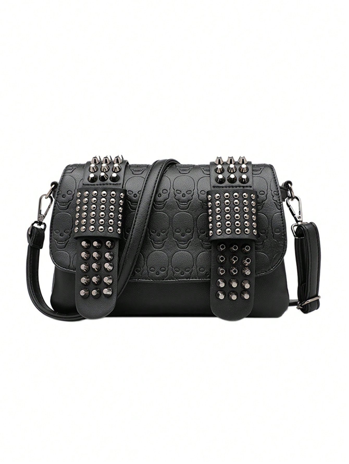Women's Street Fashion New Punk Style Soft Skull Head Rivet Metal Design Crossbody Shoulder Bag, Suitable For Going Out, Commuting, Shopping, Daily Use