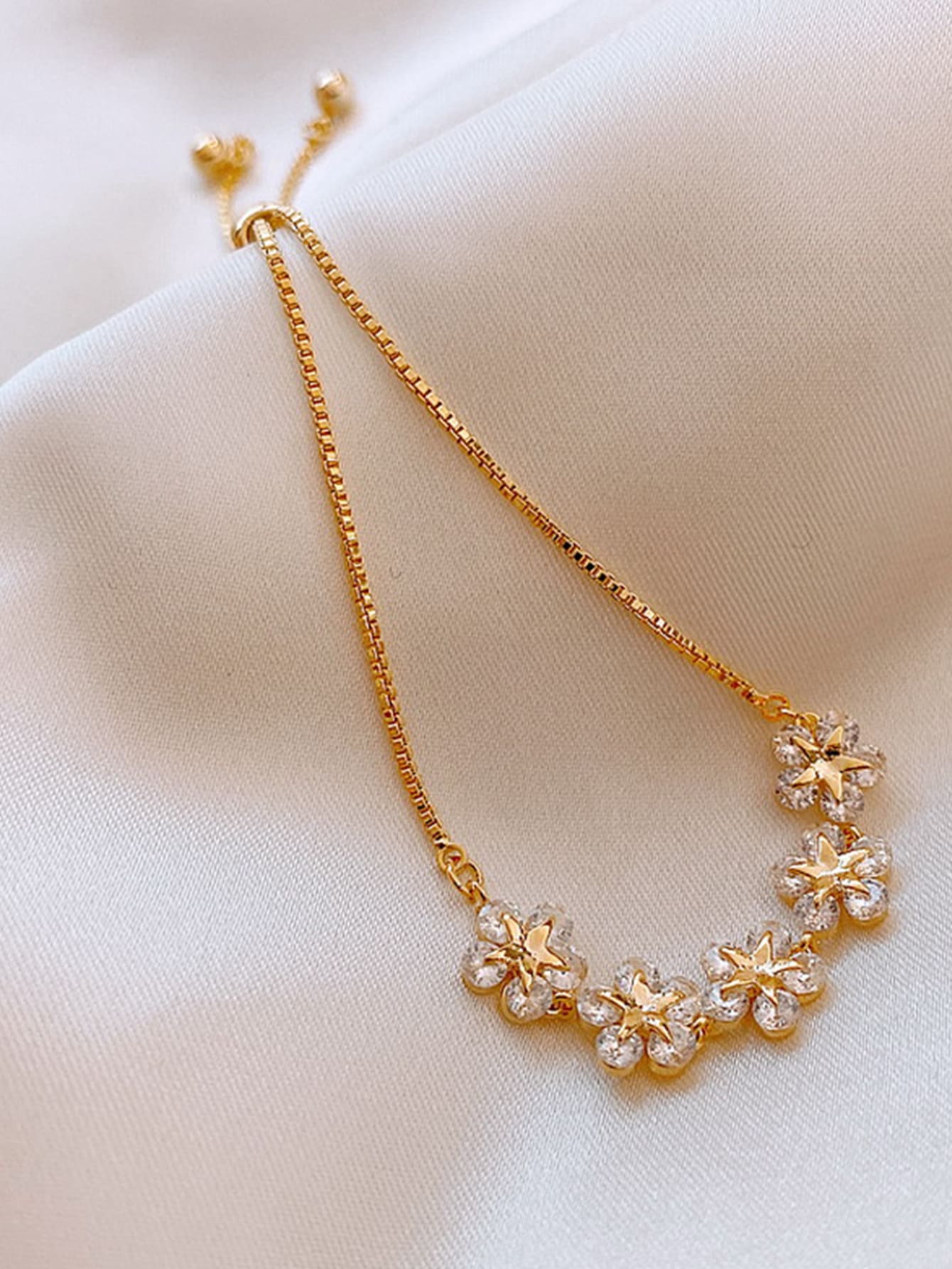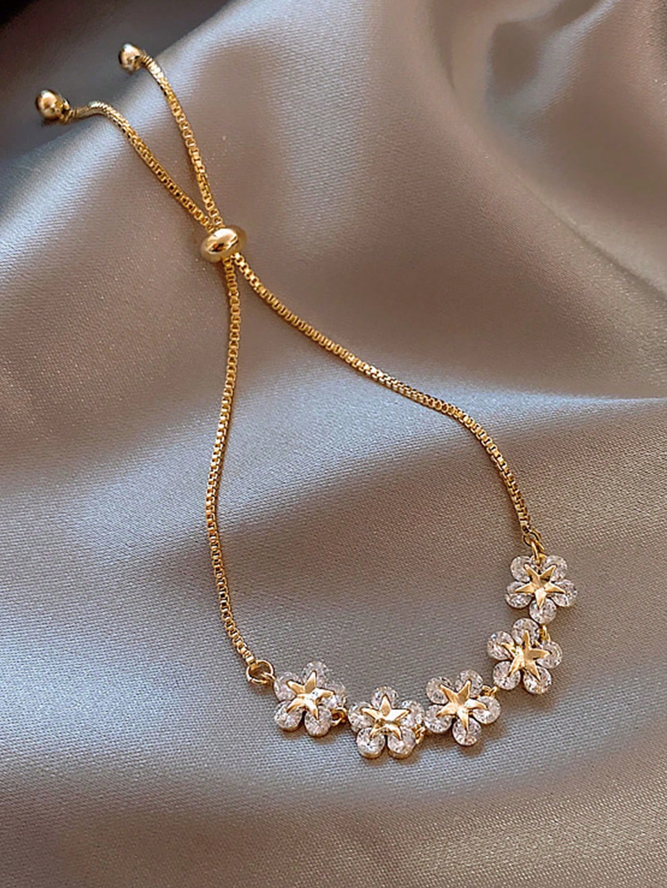 1pc Glamorous Stainless Steel Star Detail Cubic Zirconia Flower Decor Bracelet For Women For Party Valentines,Mom,Mother,Mother's Day,Gift