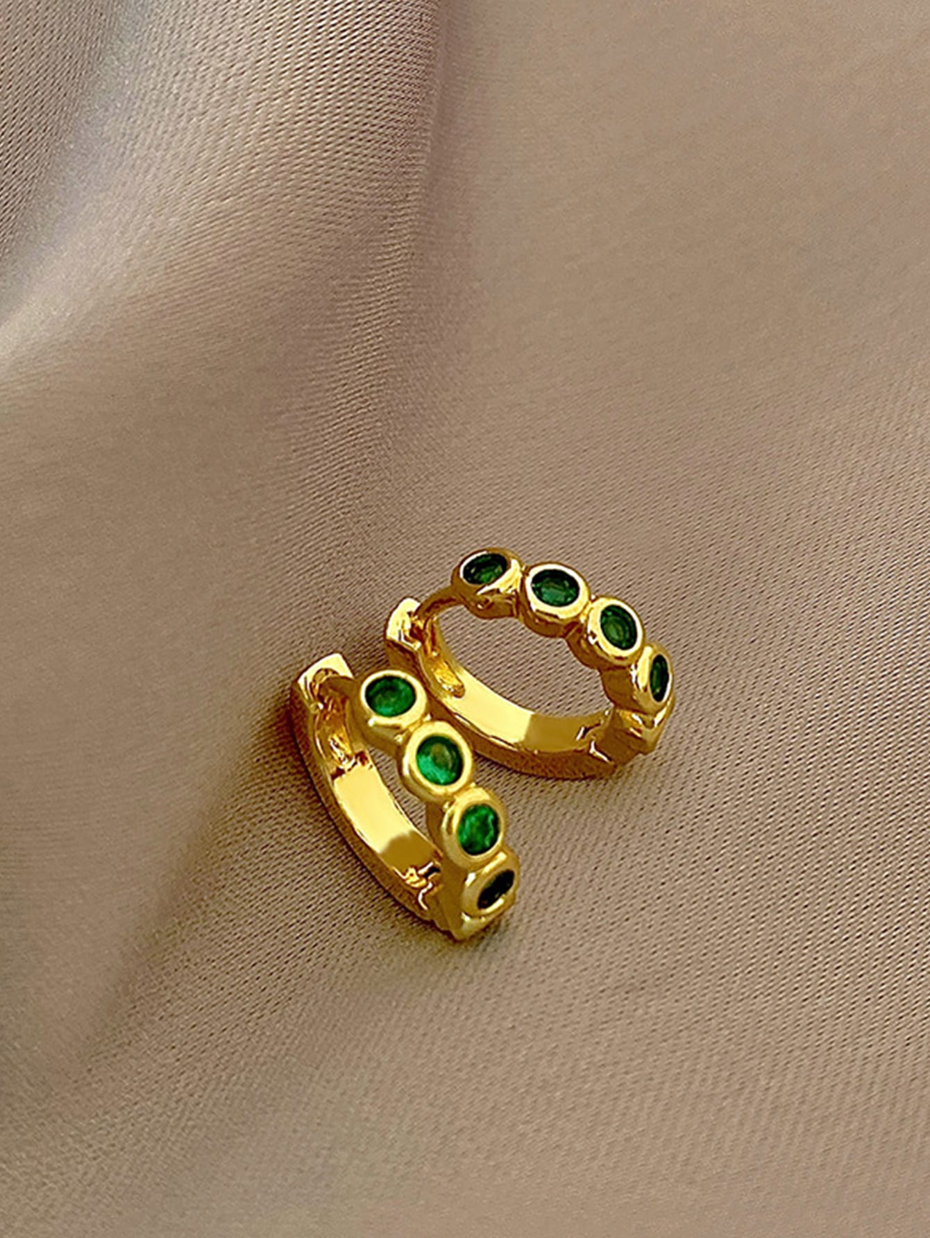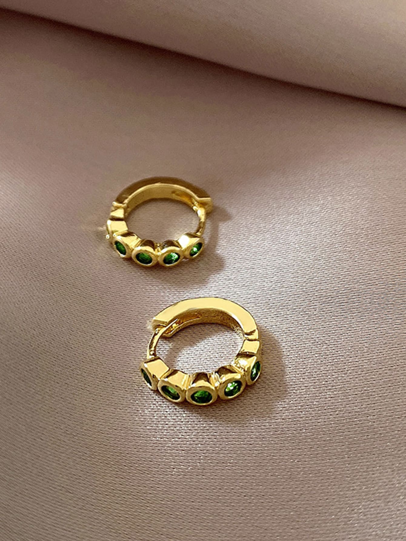 1 Pair Luxury High-End Elegant Fashion Versatile Jewelry Earrings With Green Zirconia Stone Hoop Earrings