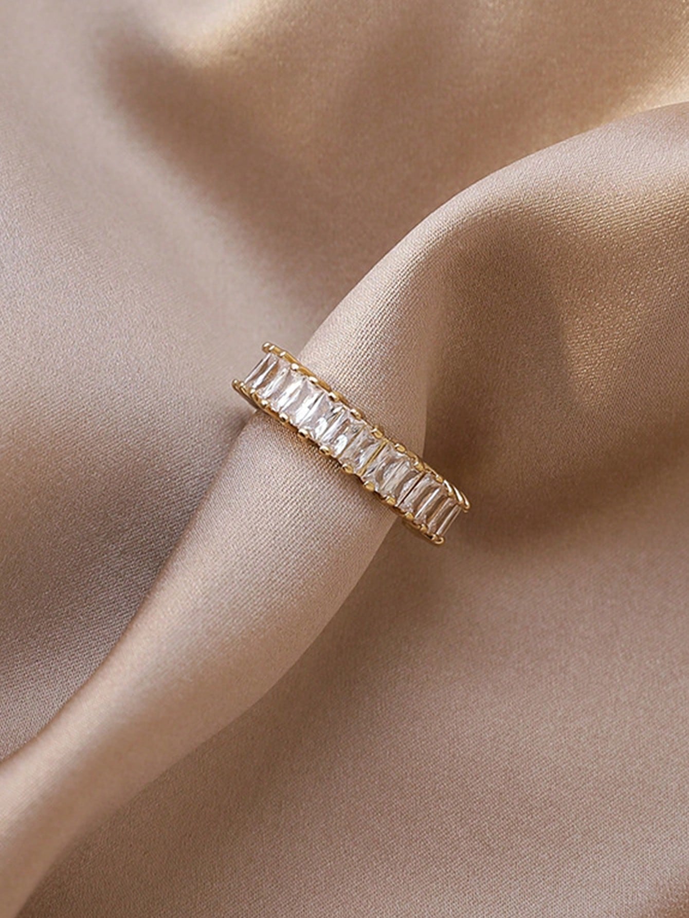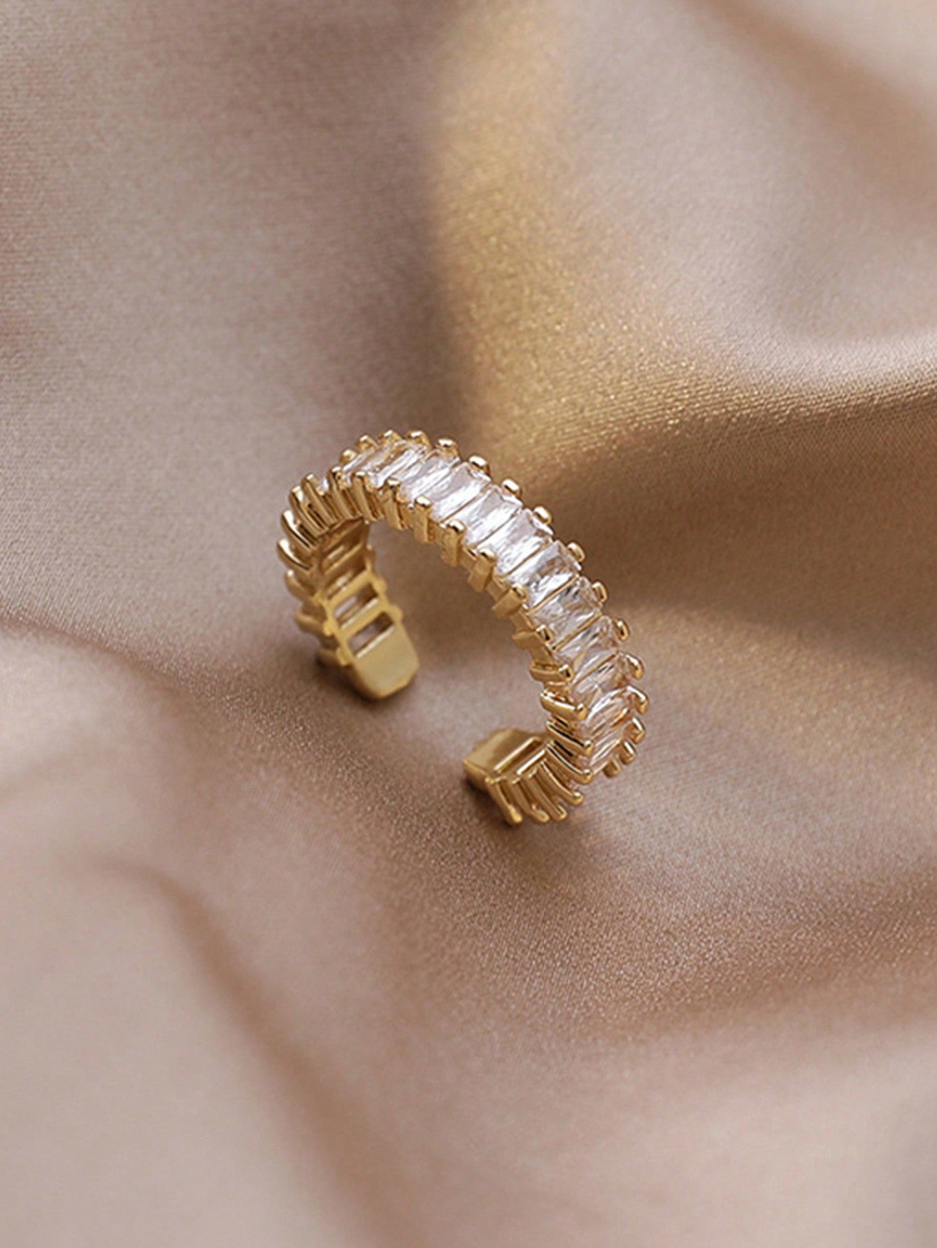 1pc Fashionable Versatile Exquisite Niche Design Adjustable Shiny Zirconia Square Ring