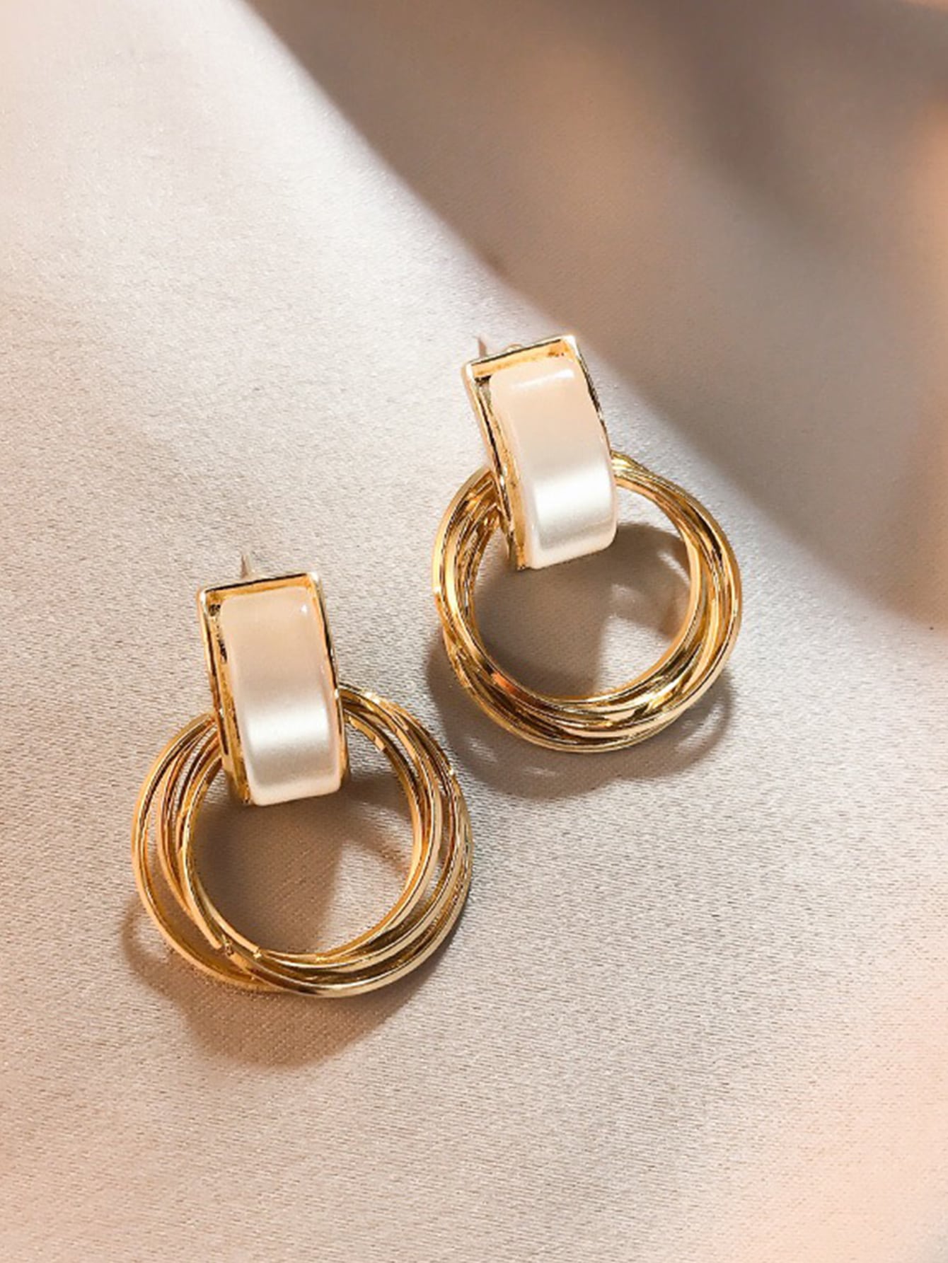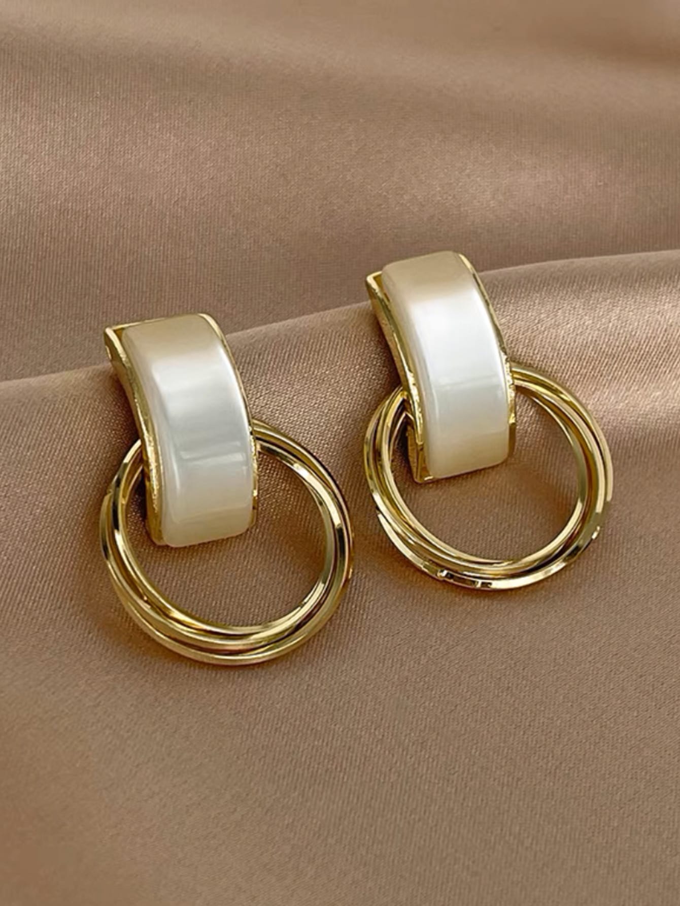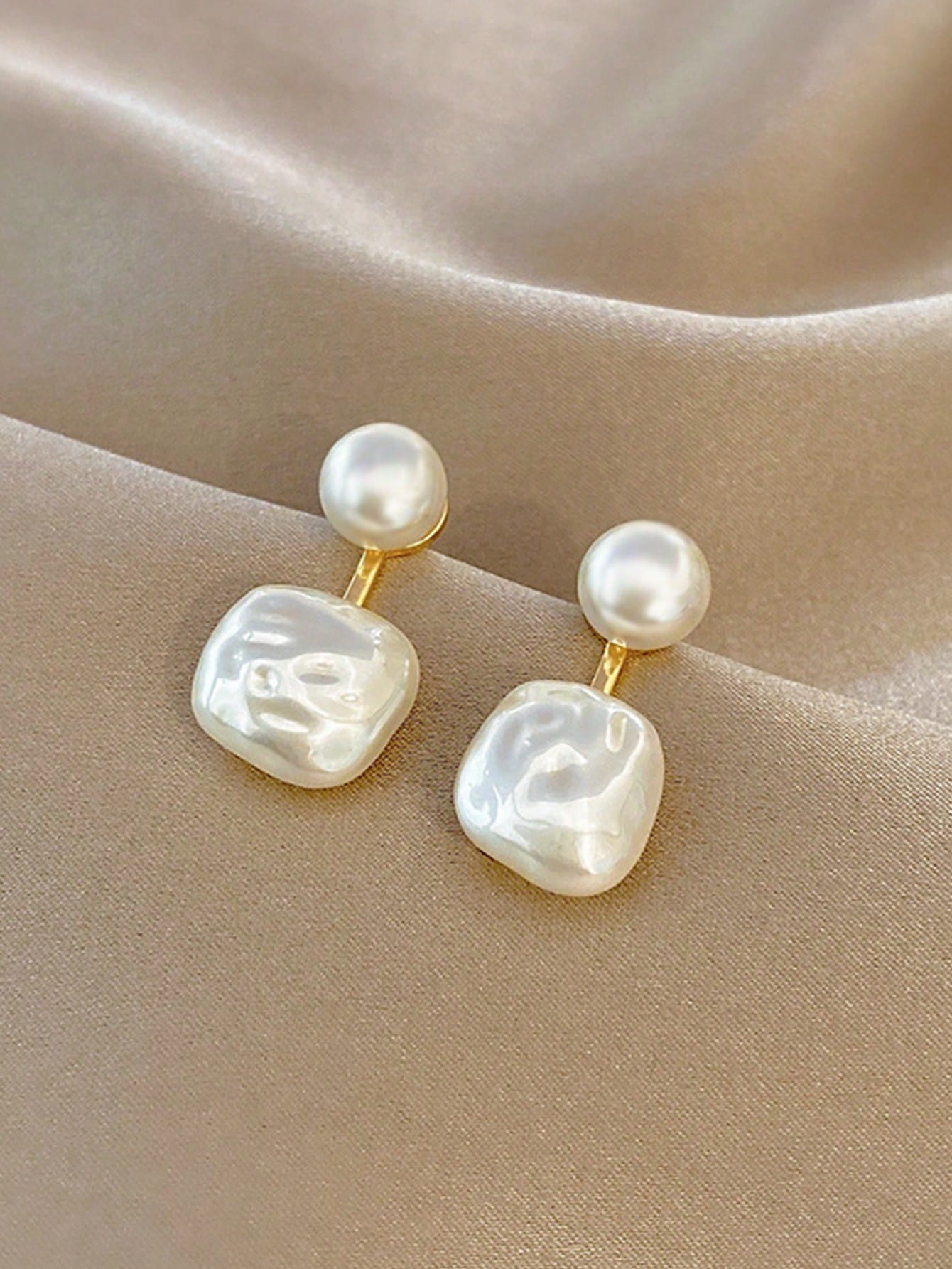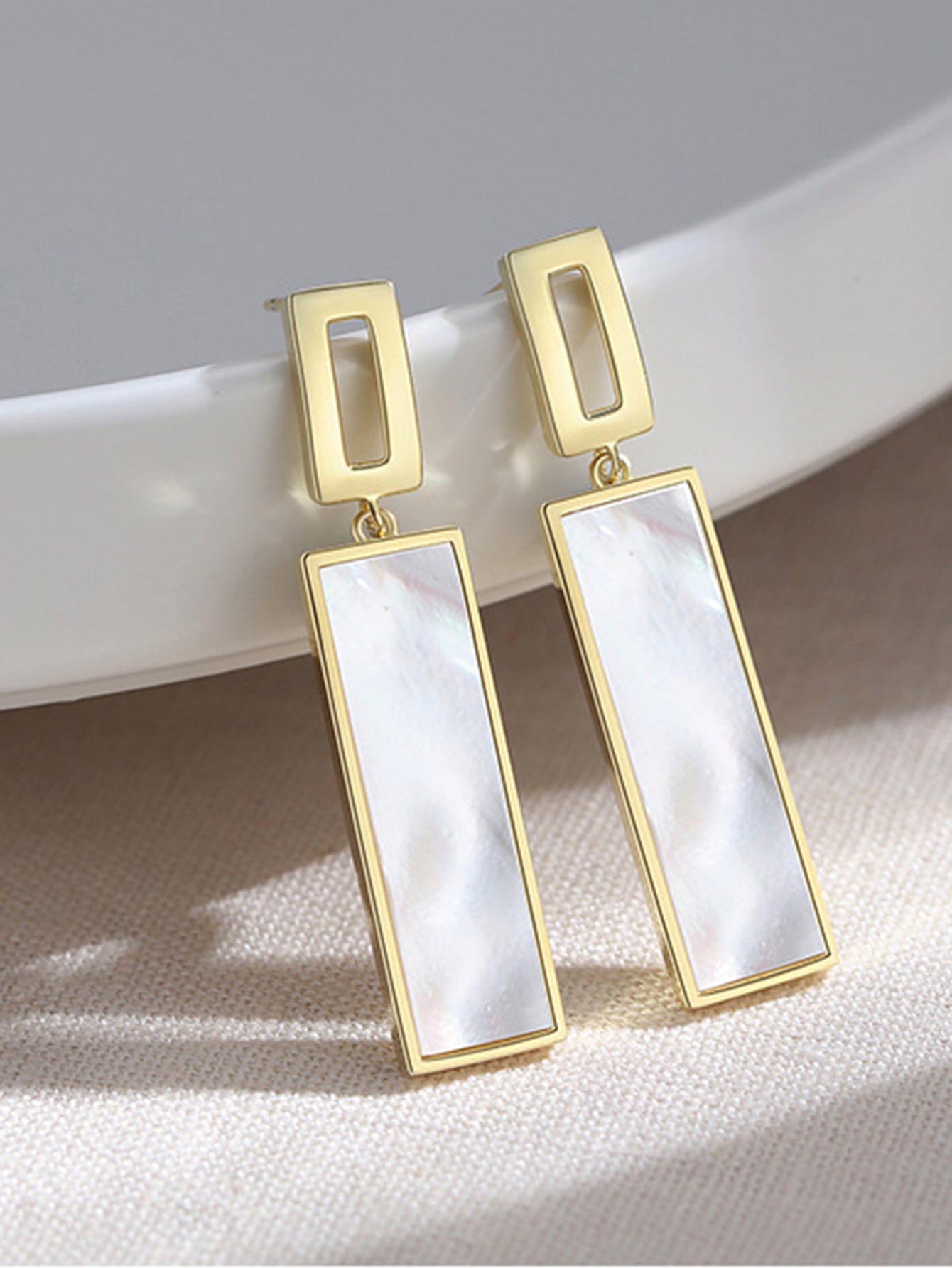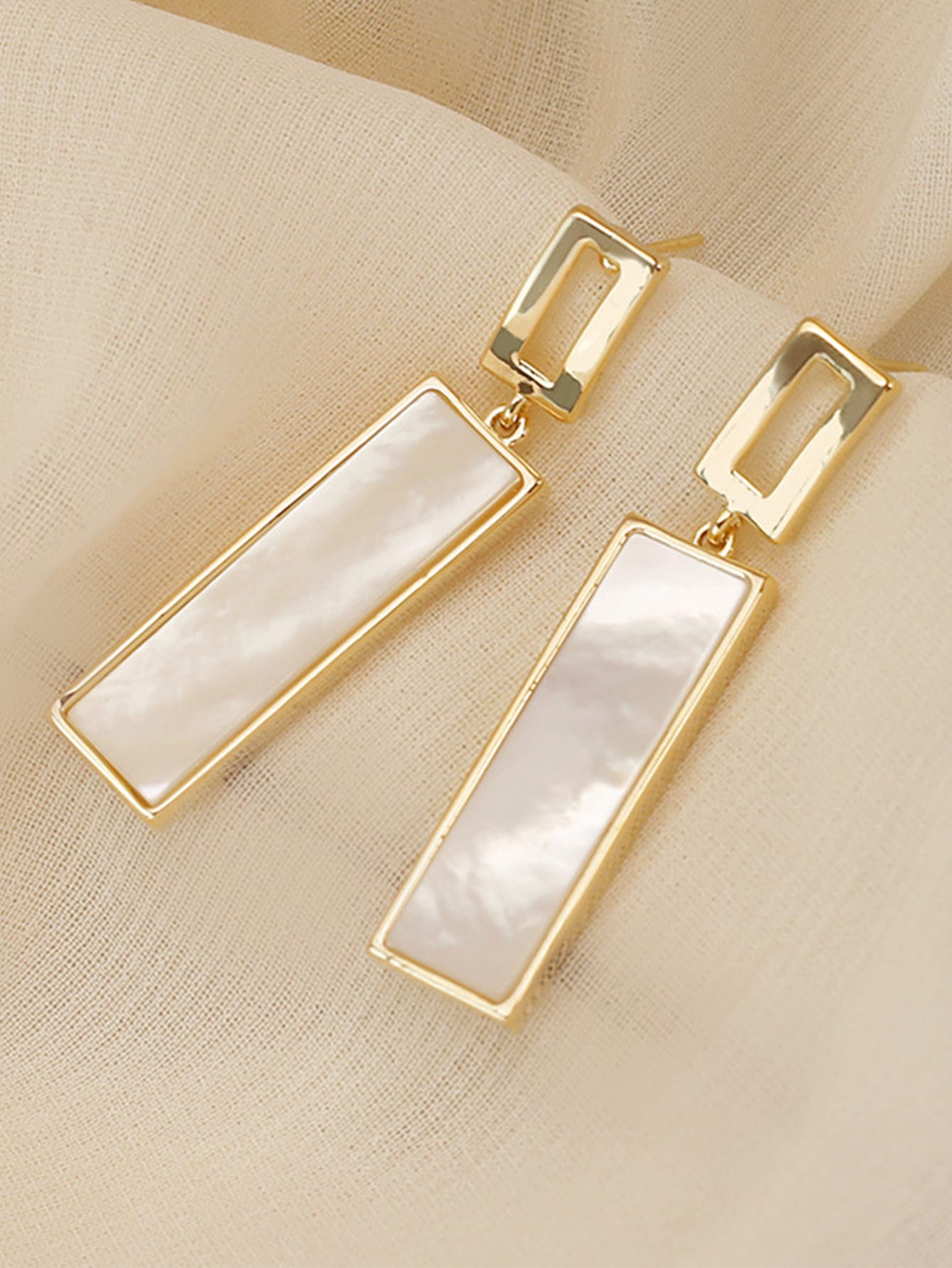 1pair Elegant & Simple Vintage Style Long Rectangle Shaped Mother Of Faux Pearl Earrings