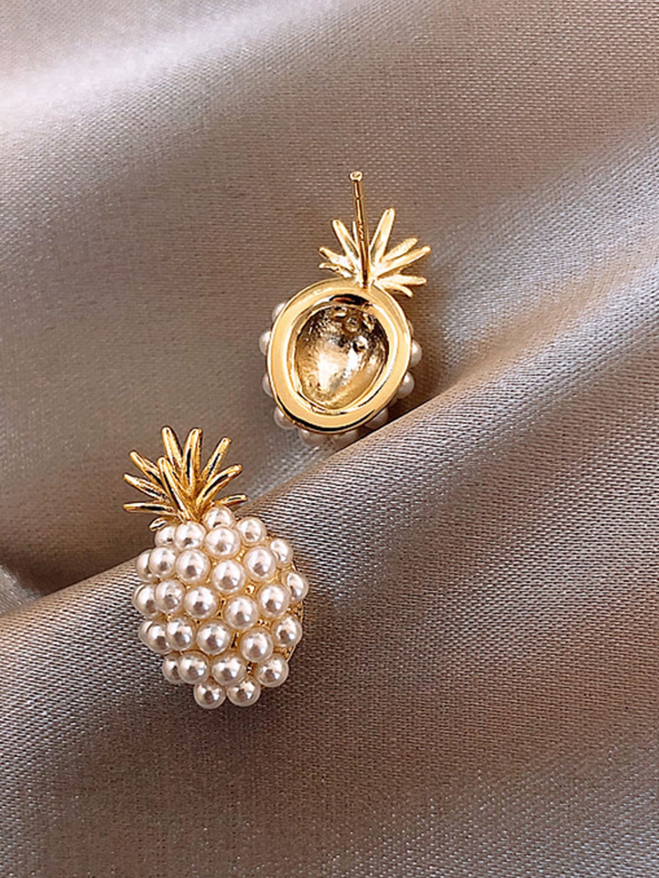 1pair Fashionable Stainless Steel Faux Pearl Pineapple Stud Earrings For Women For Daily Decoration
