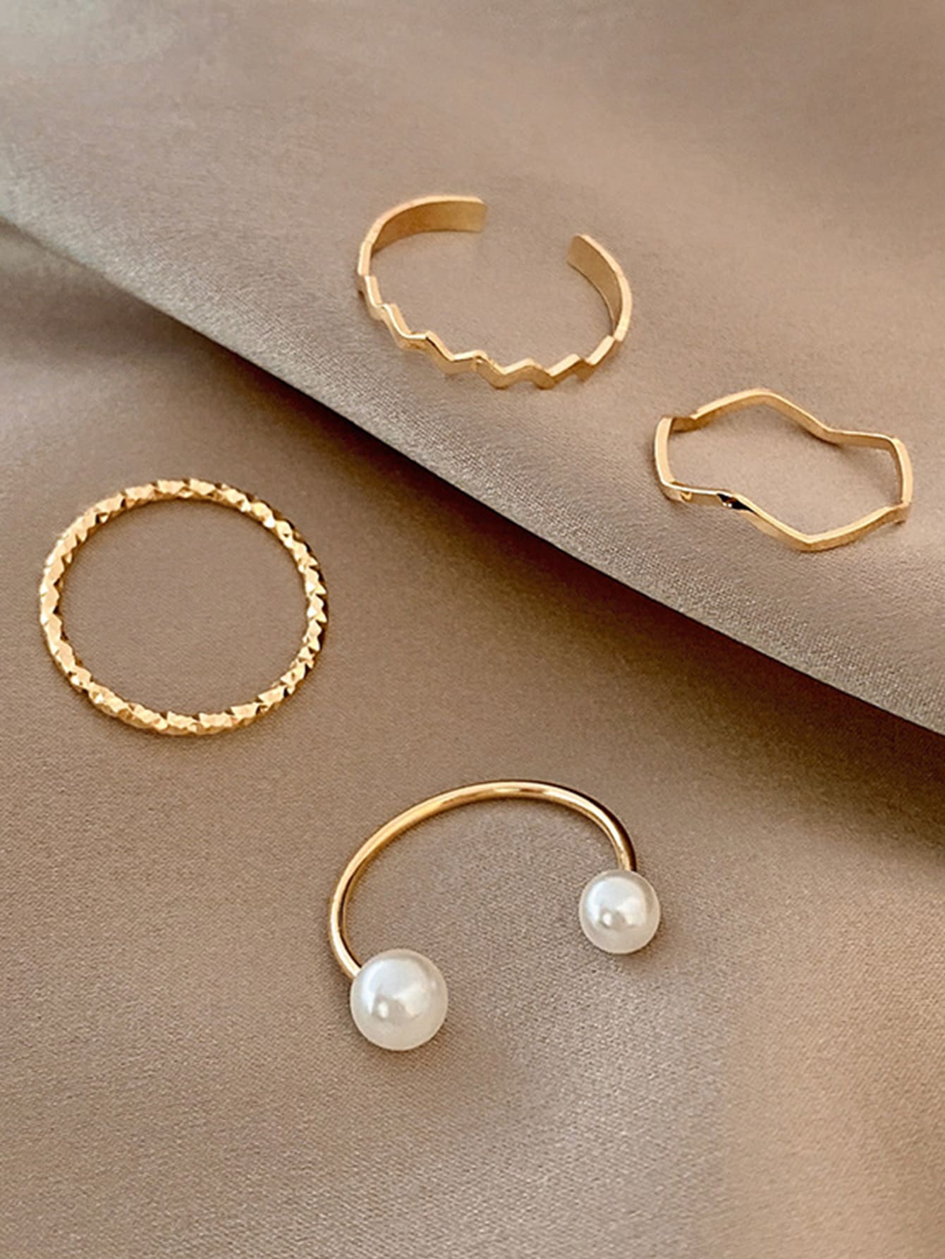 1set Simple Faux Pearl Twisted & Wave Design Ring Set