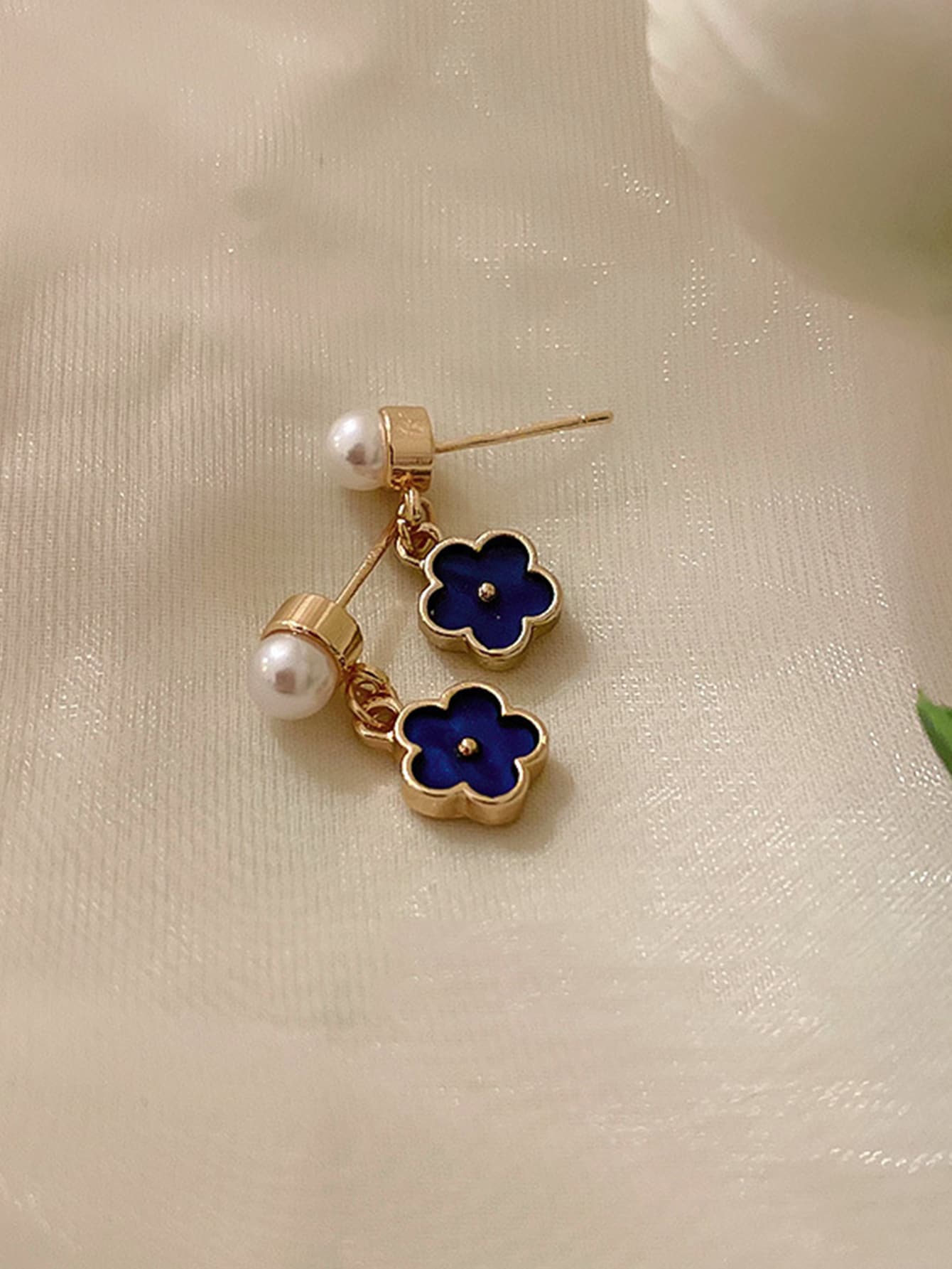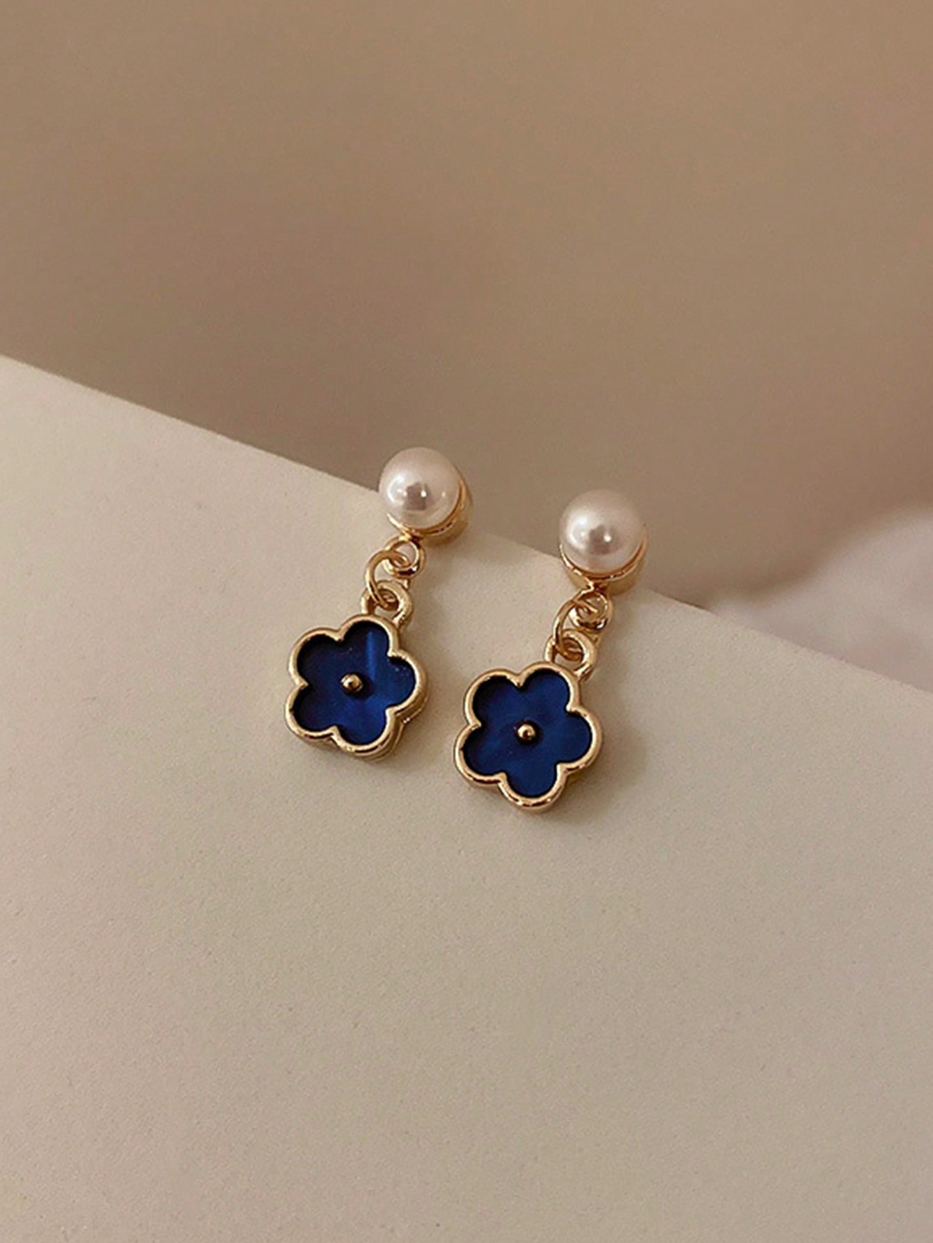 1 Pair Simple Elegant Pearl Flower Stud Earrings, Versatile Design