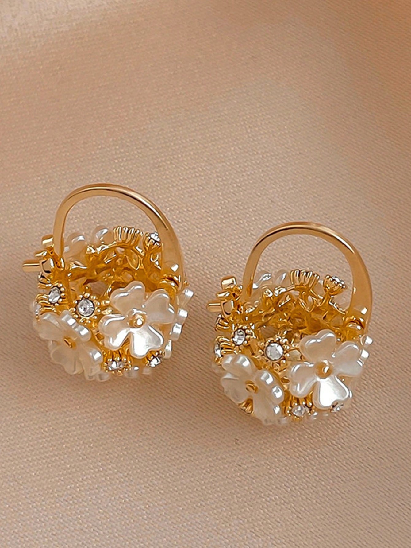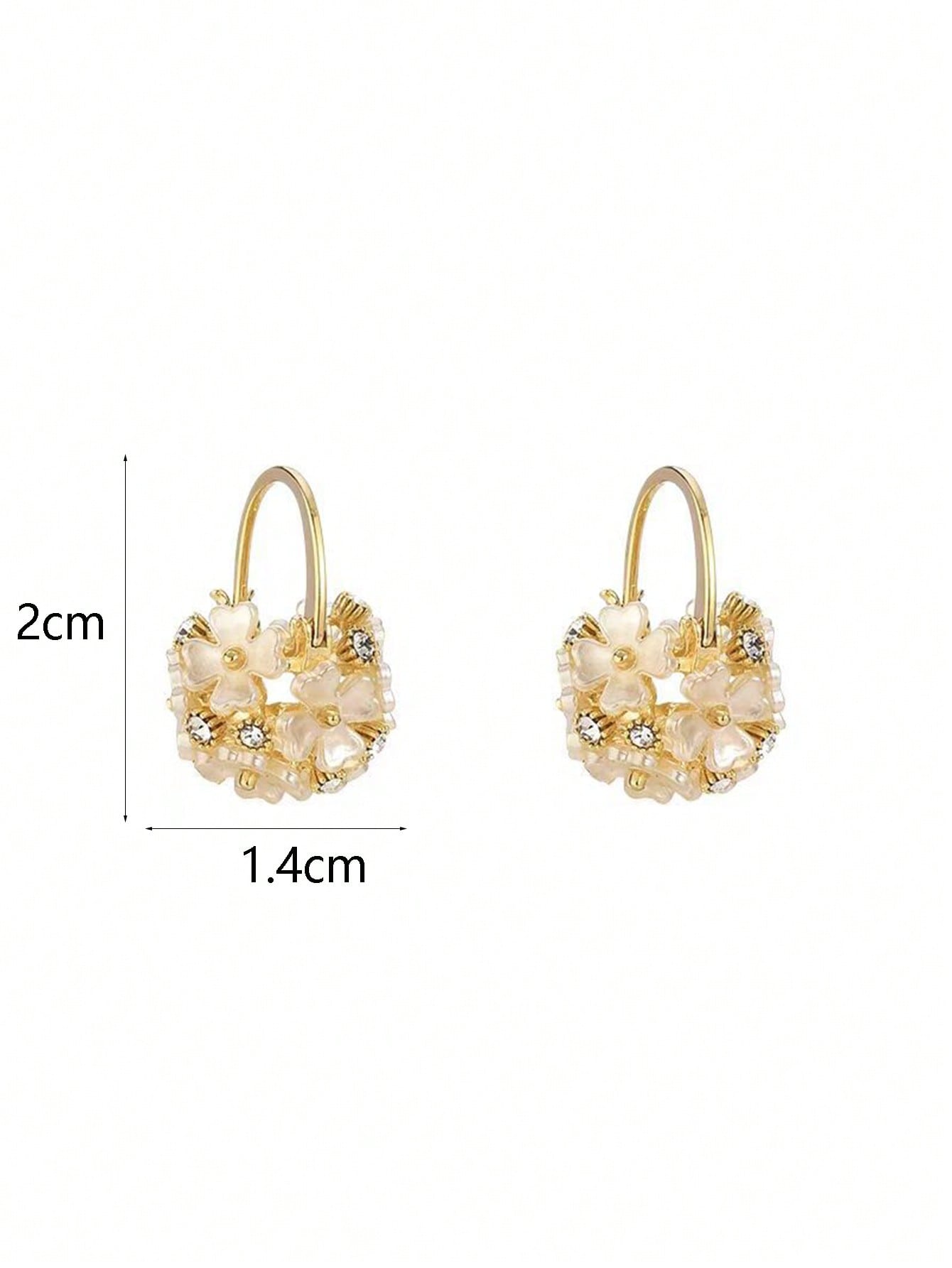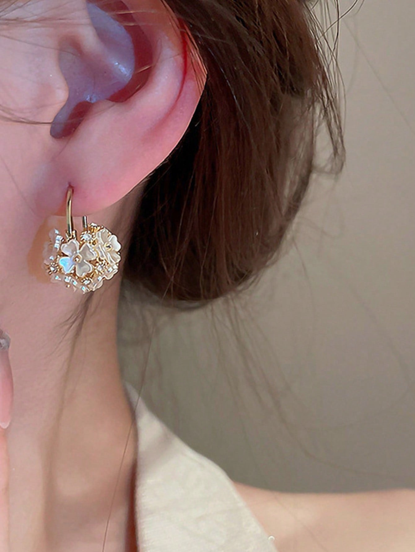 • 1pair Luxurious & Fashionable Forest Style Flower Shape Rhinestone Inlaid Sphere Earrings Valentines,Mom,Mother,Mother's Day,Gift
