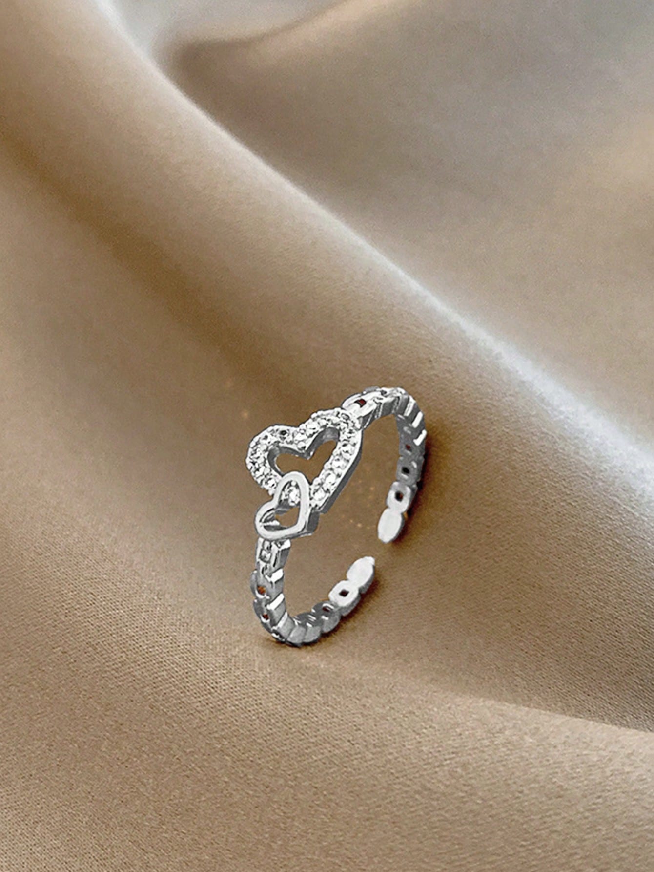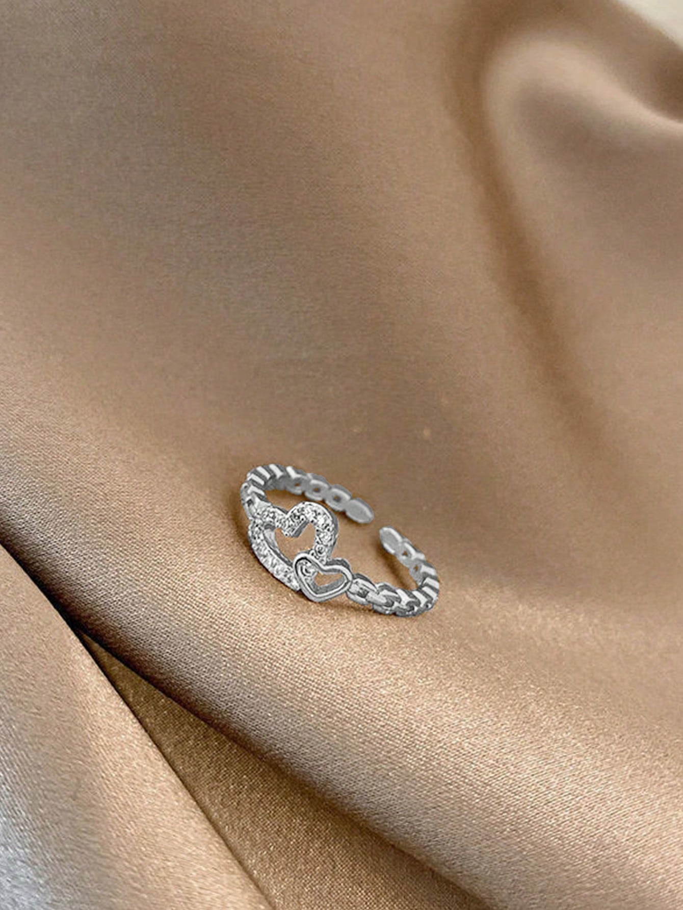 • 1pc Fashion Stainless Steel Cubic Zirconia Decor Heart Cuff Ring For Women For Decoration Gift