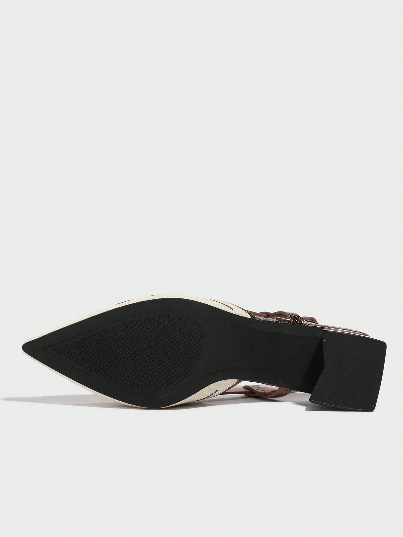 Women's Floral Embroidery Pointed Toe Slip-On Chunky High Heel Shoes, Fashion Versatile Commute Mule Shoes, Elegant For Party, Wedding, Formal Occasion, Suit With Dress - Coffee Brown